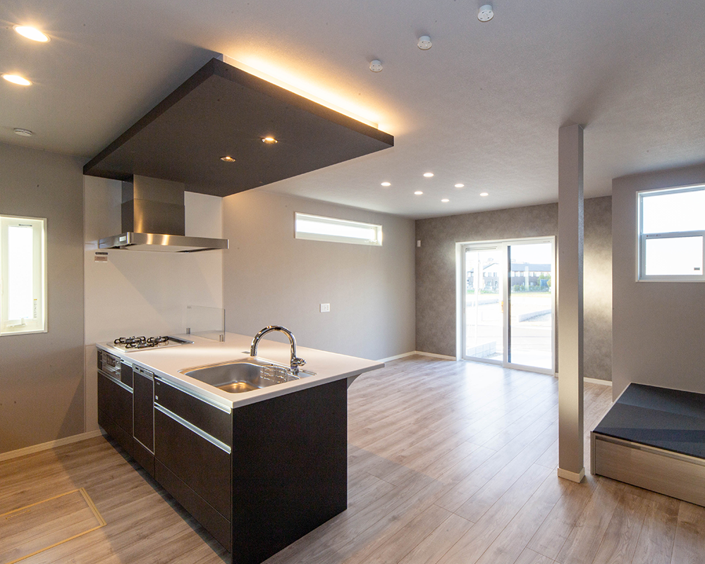 - 南面に大きな開口部があるリビングは明るくて快適です。