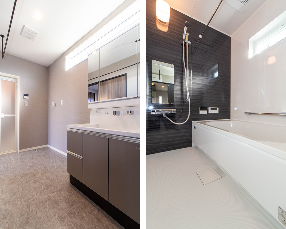 - 玄関から直行できる2way仕様の洗面室は手洗いの習慣付けにも重宝します。