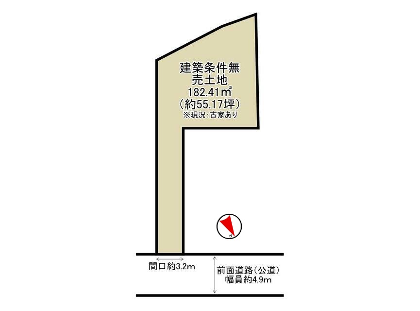 道路幅員 北東側 幅員約4.9mの道路に約3.2m接面