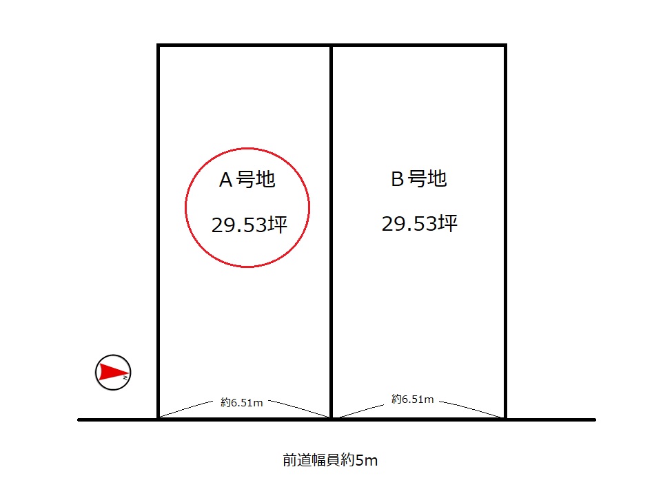 | 道路幅員 | 東側 幅員約5.0m 間口約6.5m |
