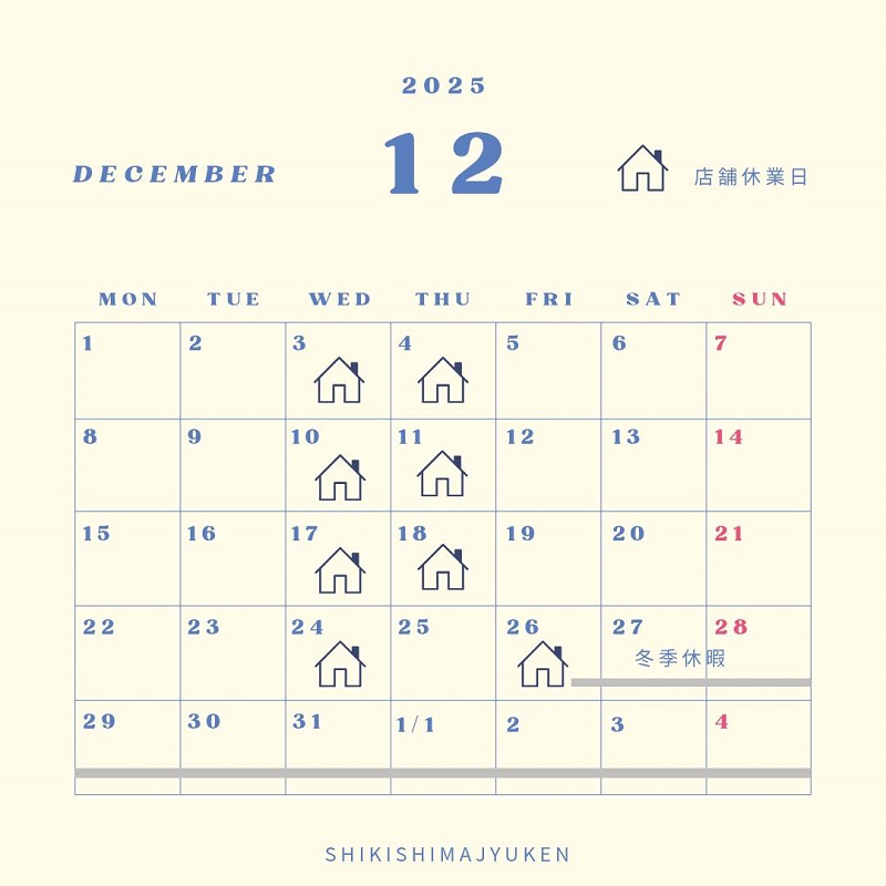 令和7年12月の営業日 - トピックス | 敷島住研株式会社